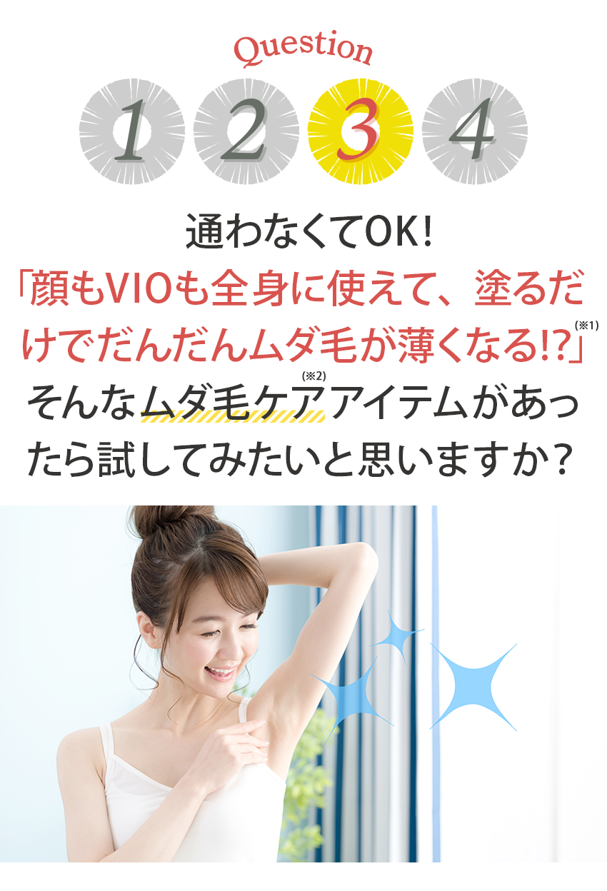 ※2:ムダ毛ケアとはムダ毛処理後の肌を整える、お手入れを楽にすることです。